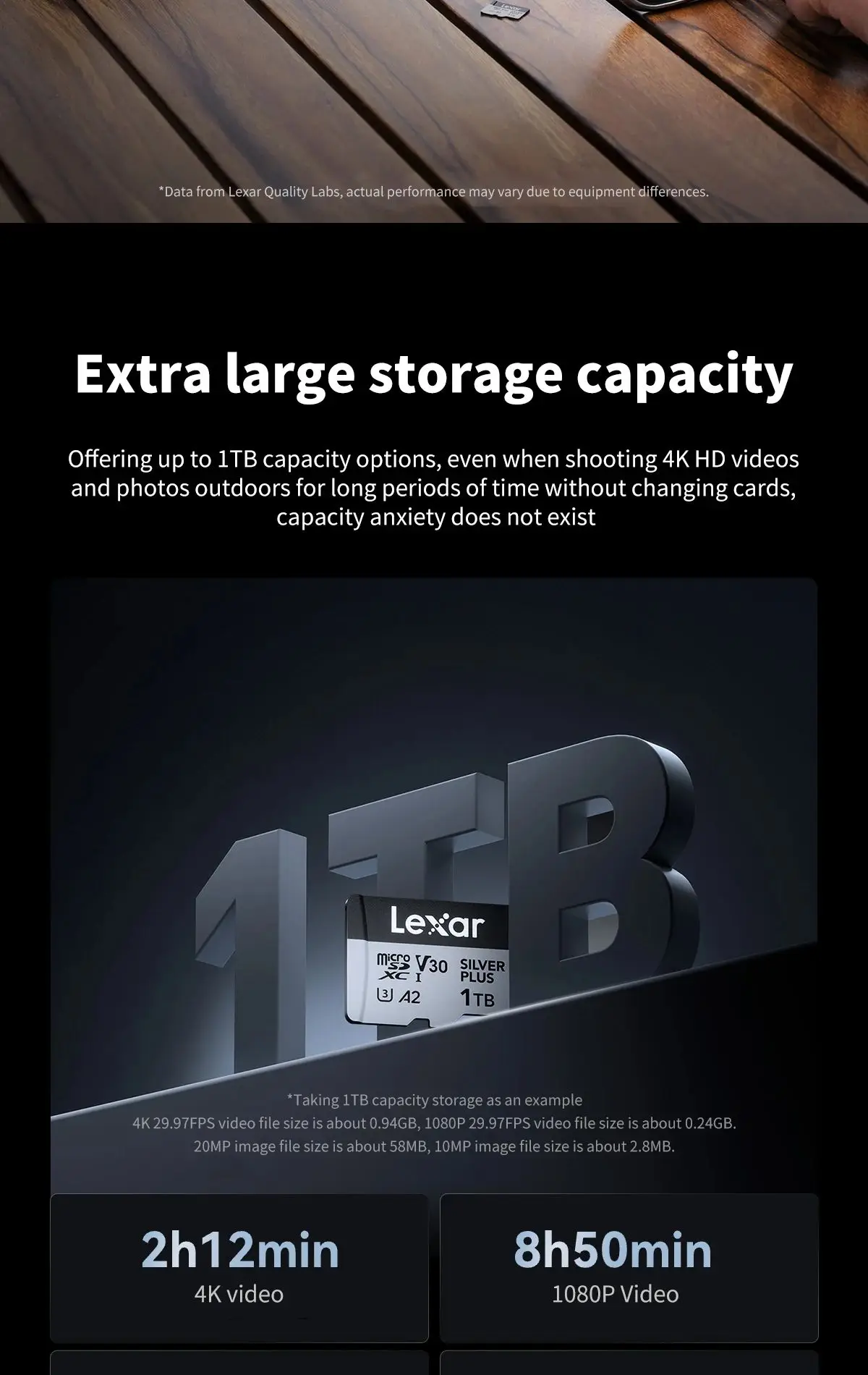 Rated V30, the Lexar Professional SILVER PLUS microSDXC UHS-I Card is built to capture burst photos without missing a shot and smoothly shoots up to 4K 60 FPS ultra-HD video.Extensive Compatibility