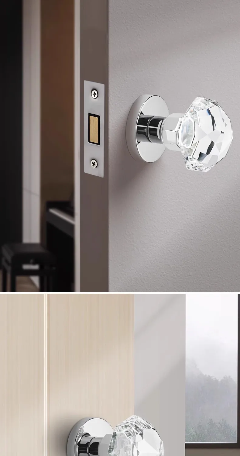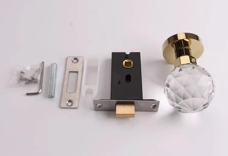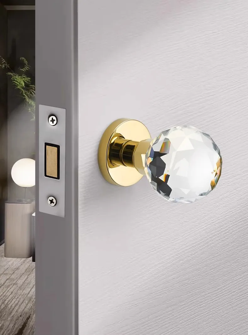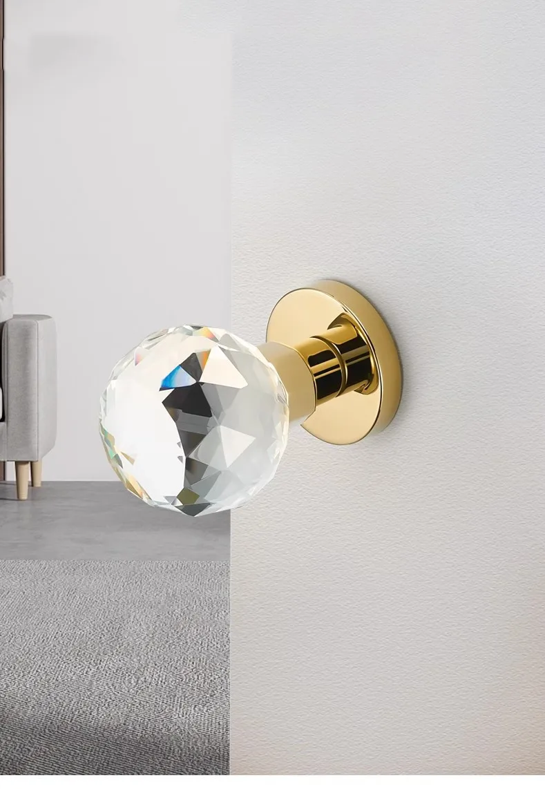 Light Luxury Invisible Lock Single-sided Handle Portable Door Lock Gold Indoor Background Wall Globe Lock Crystal Door Handle