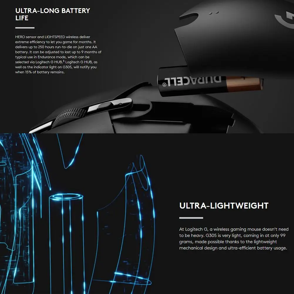 Logitech G304 LIGHTSPEED Gaming Mouse 6 Programmable Buttons 2.4G USB Wireless HERO Sensor 12000DPI Adjustable Optical Mice New|Mice|