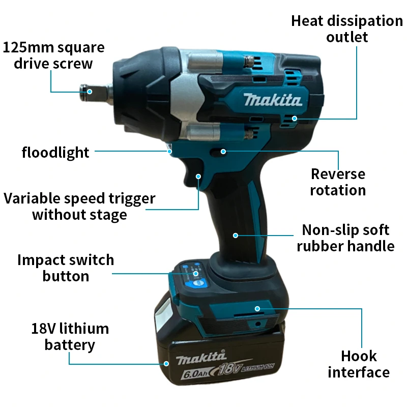 Makita DTW700 Deko 18V Brushless Impact Wrench Bare Unit 1/2" Square Drive Cordless Lithium Ion Tool Repair, Screwdriver