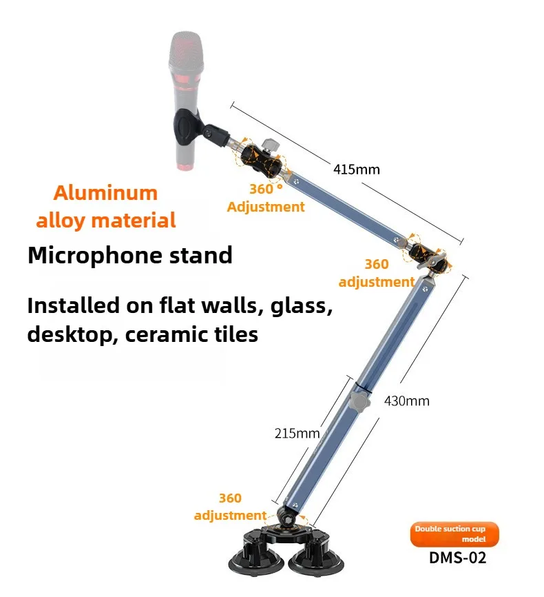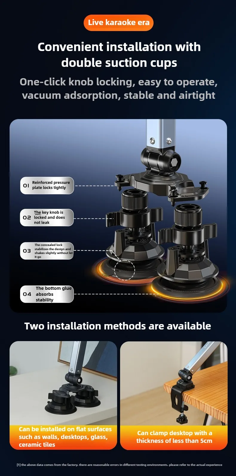 Professional Dual Suction Mount 360° Microphone Boom Arm Mic Stand Microphone Clamp Holder Microphone Accessories for Streaming