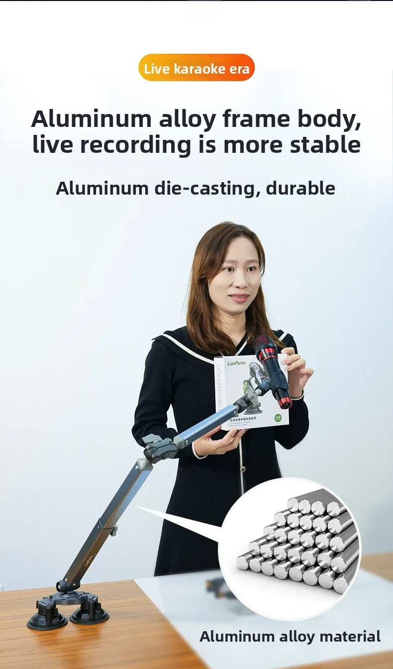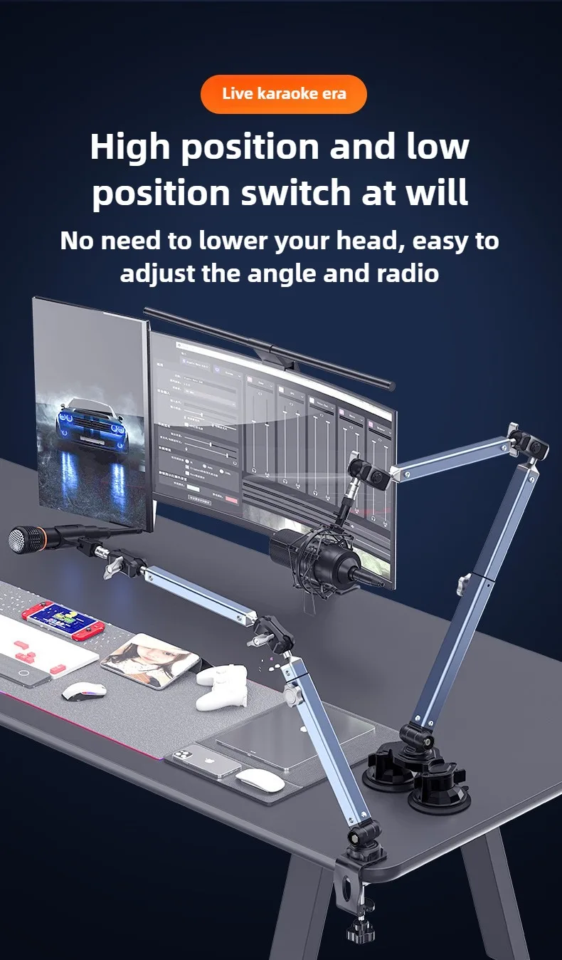?4. [Flexible cantilever structure, space utilization maximization]-The cantilever made of high-strength aluminum alloy is light and strong, and can be bent to the ideal shape at will. While maximizing the space saving on the desktop, the stable suspension of the microphone is maintained, making the work area more clean and orderly.