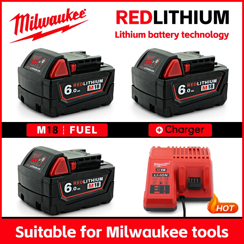 Milwaukee Battery 6AH High Energy Long Range Red Lithium Battery M18HB12 M18HB8 M12-18FC High Speed Charger 48-11-1850
