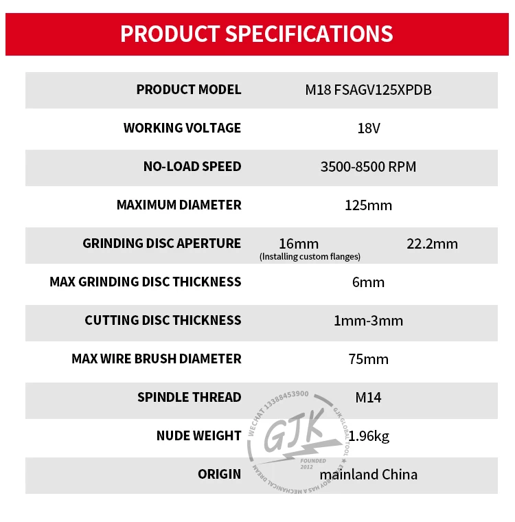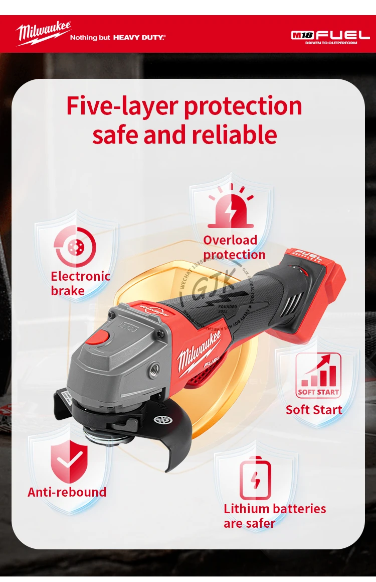 MILWAUKEE M18 FSAGV125XPDB 2888-20 M18 FUEL™ 125 mm variable speed & braking angle grinder with paddle switch(TOOL ONLY NO BOX)