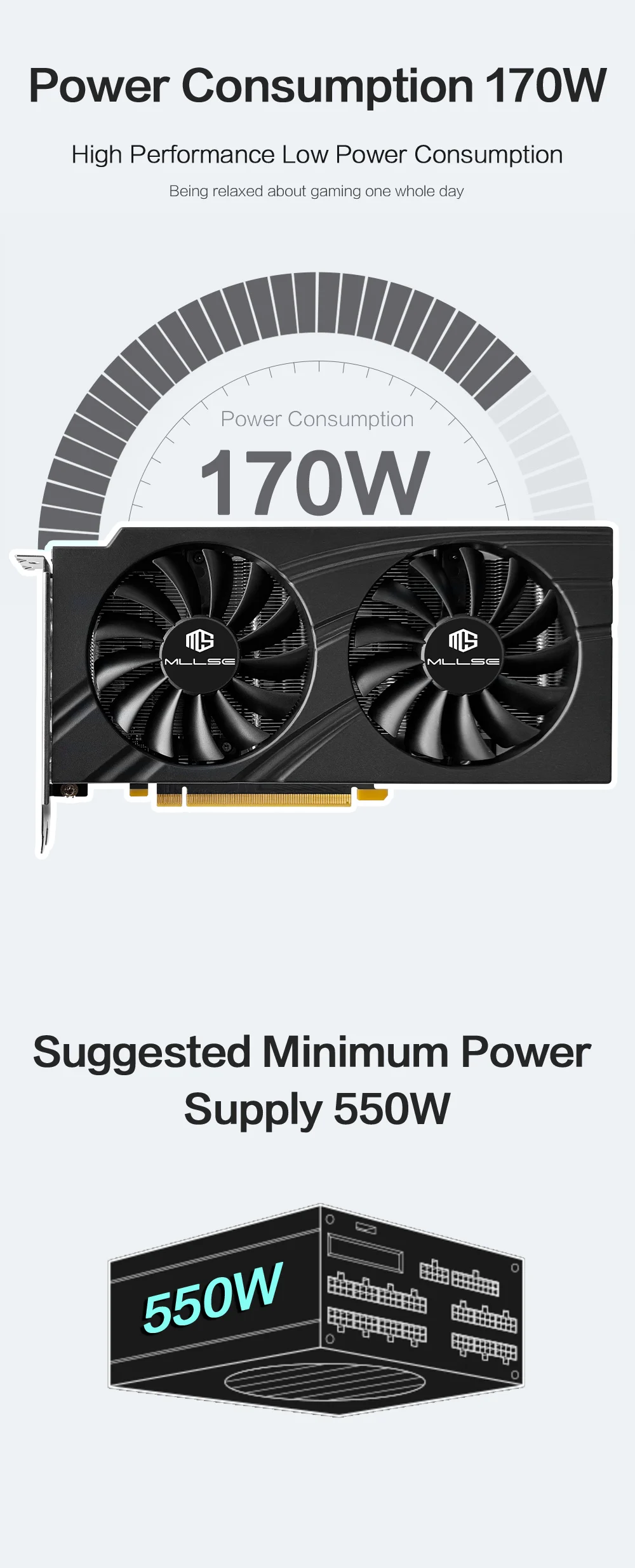 • 8Pin Power Supply :With an 8Pin power supply, this graphics card guarantees stable power delivery, preventing any sudden shutdowns during intense gaming sessions.