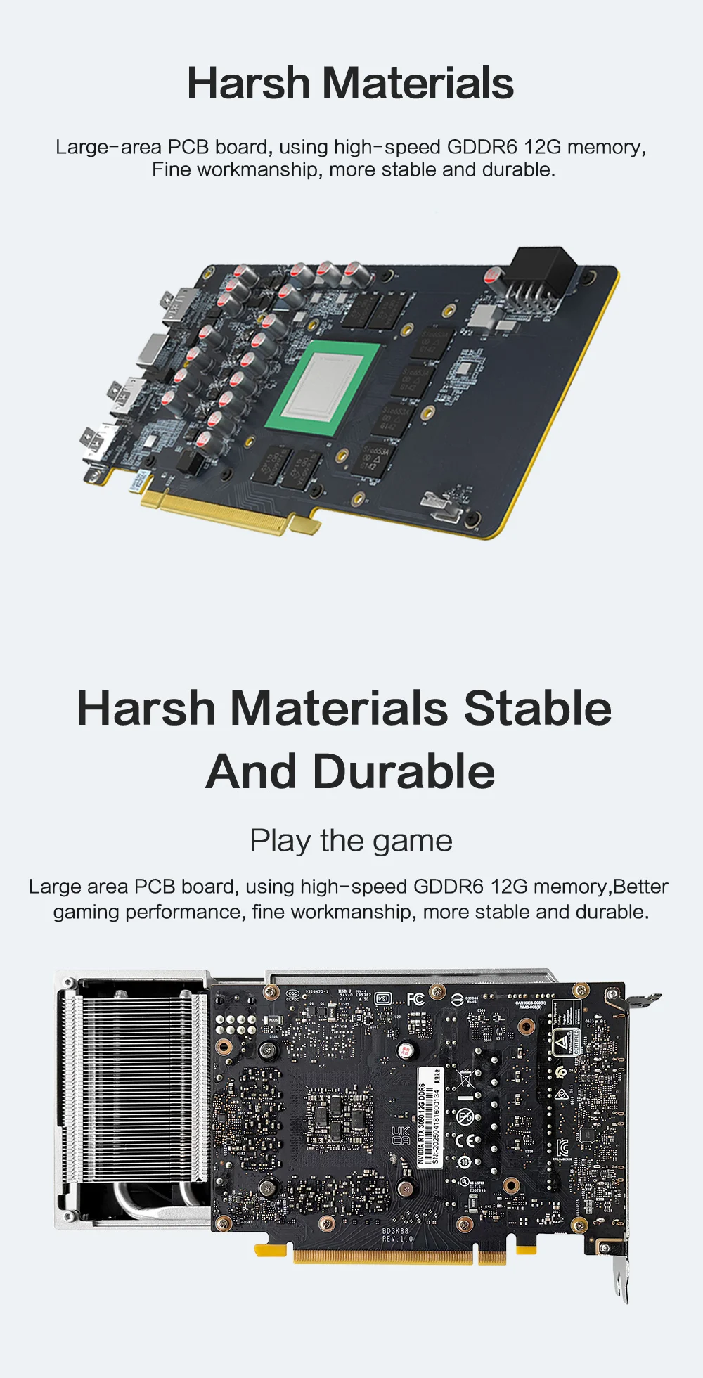 Large-area PCB board, using high-speed GDDR6 12G memory,Fine workmanship, more stable and durable.Power Consumption 170W