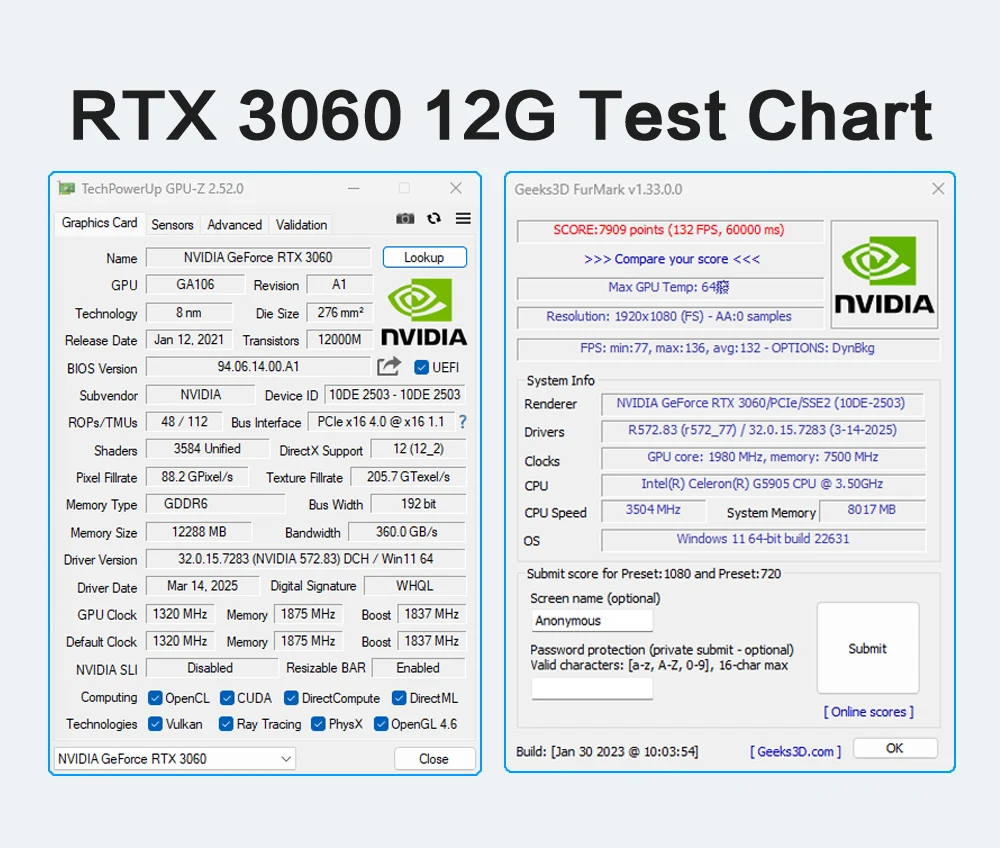DP+HD two mainstream high-definition outputs Smooth interface and high-definition game visual experience.RTX 3060 12GB Test Chart