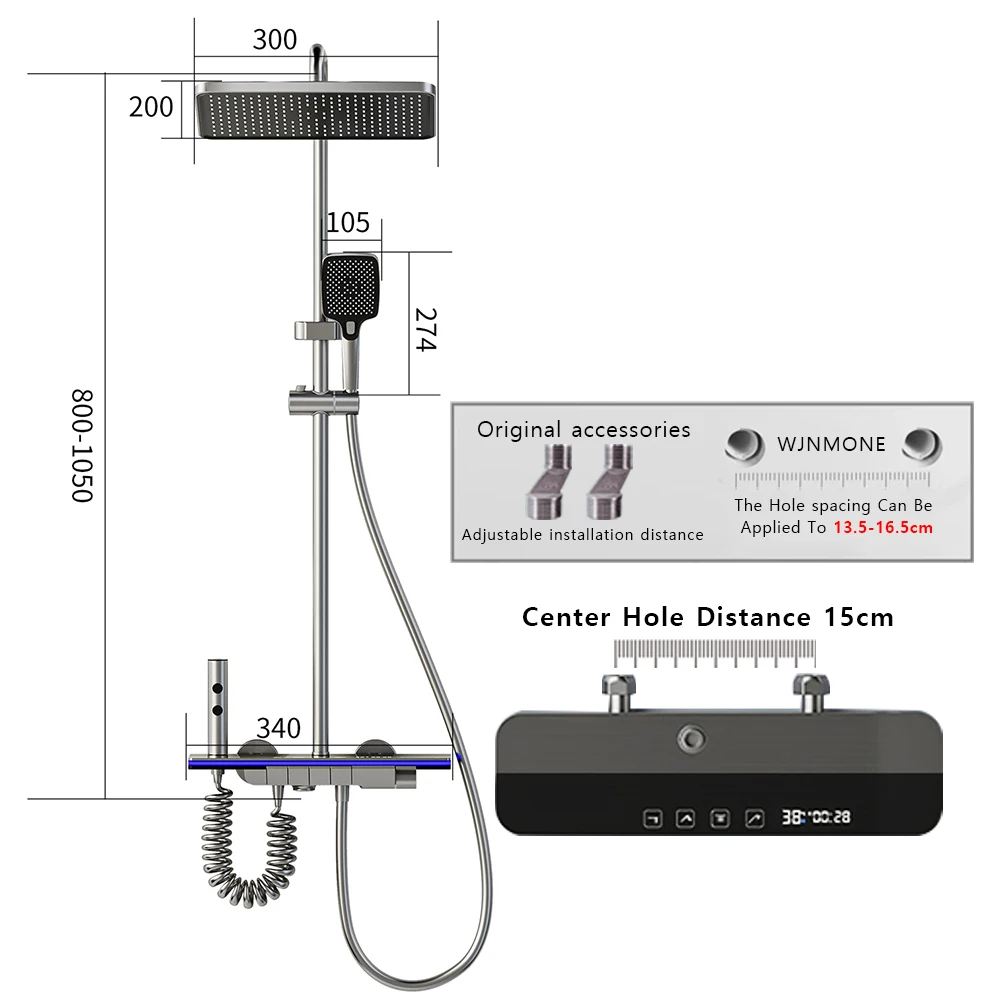 Modern Bathroom Faucet Set Wall Mounted LED Display Rain Shower System Bathtub Hot and Cold Mixer Crane Gun Gray Shower Full Set