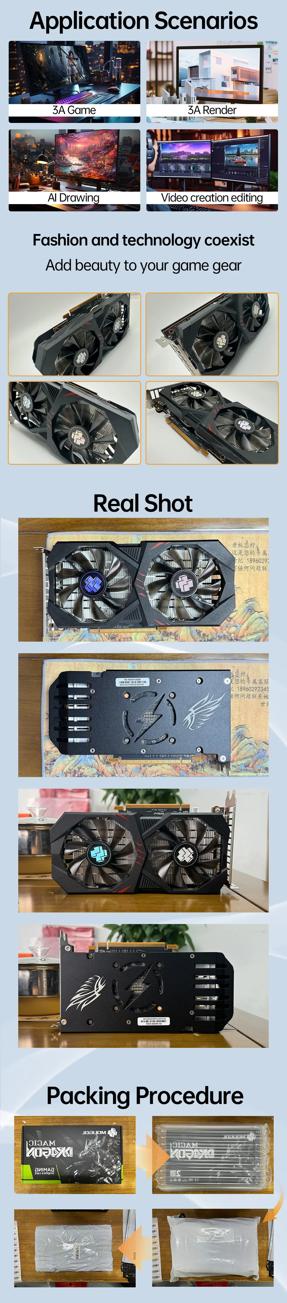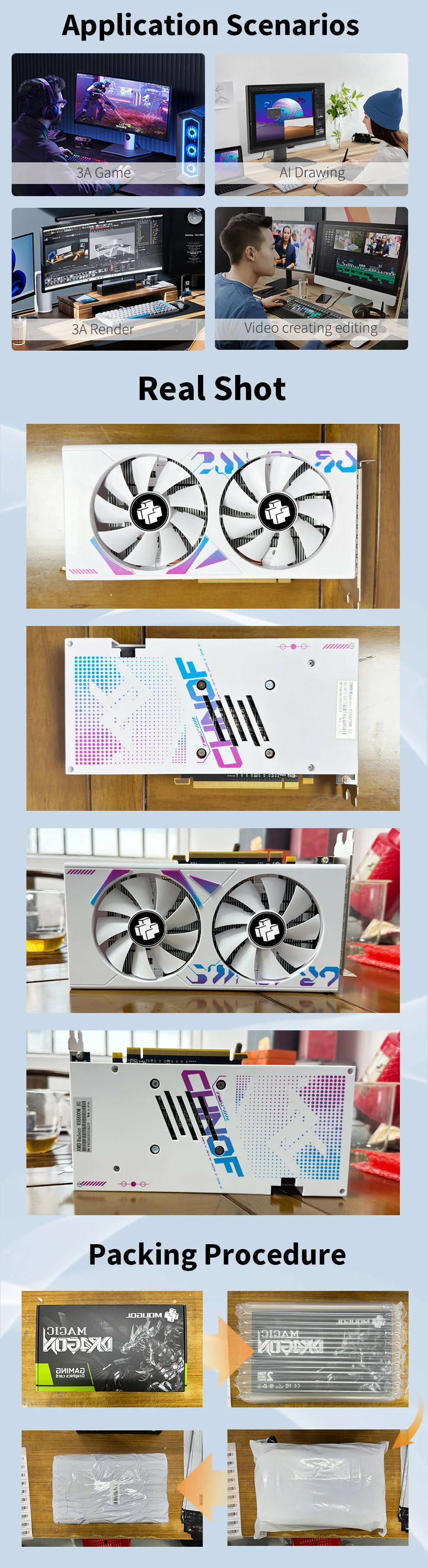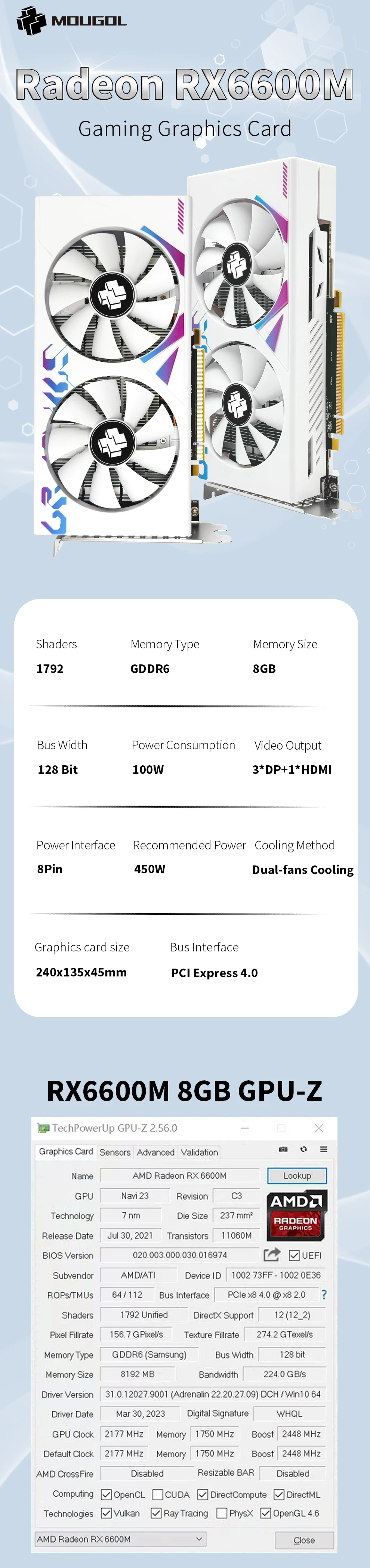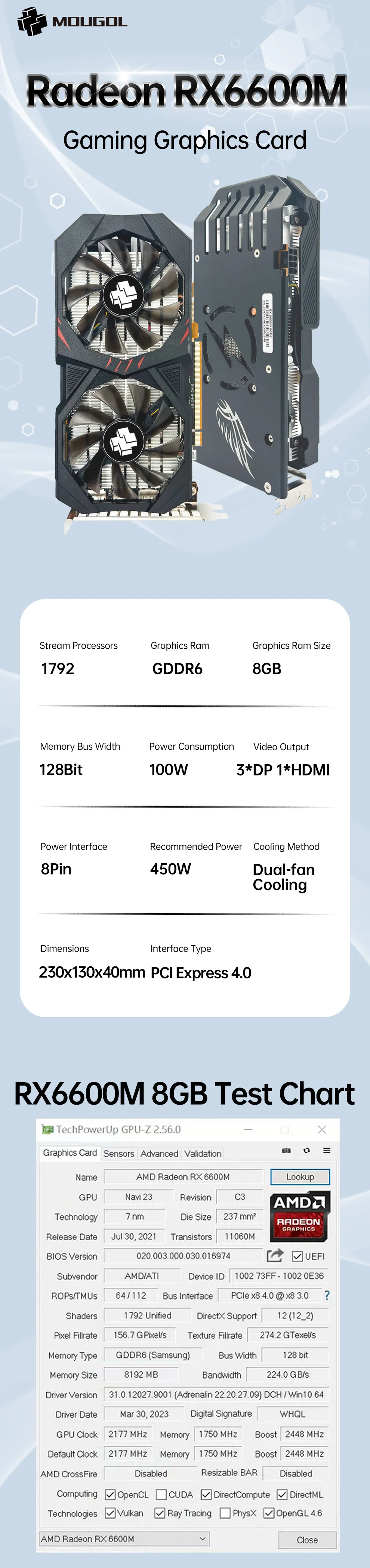 MOUGOL AMD Radeon RX6600M 8GB Graphics Card GDDR6 Video Memory 7NM PCIE4.0 128bit DP Gaming GPU Card for Desktop Computers