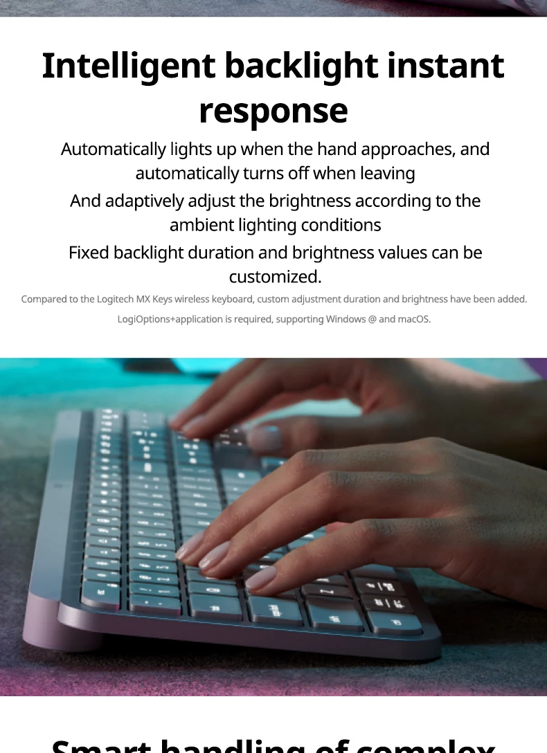 Logitech MX Keys S wireless intelligent keyboard, a new upgrade, increase the texture of typing office, dual mode connection and upgrade support Logi Bolt connection, more stable and safe in the reception can complete the complex movement process with one key, to meet the efficient and accurate needs of workers.