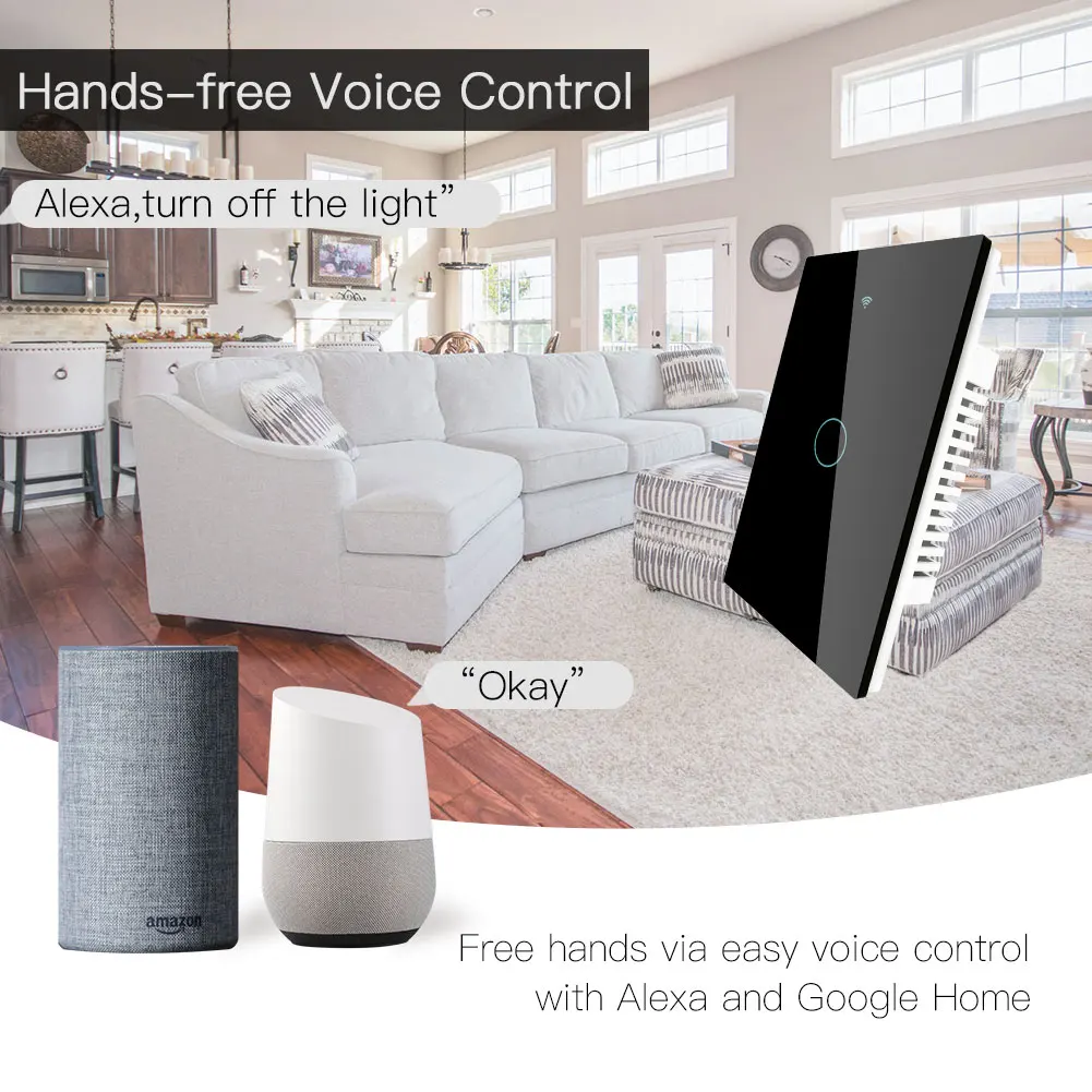 2.Differ in features from traditional common switch,this smart switch is able to be controlled by various ways alone without interference with the best value like App control,touch control,voice control and built-in RF433 frequency allows for another control via RF remote control switch with encoding 1527;(Note:433 RF Remote is not included in the package,please purchase separately.)