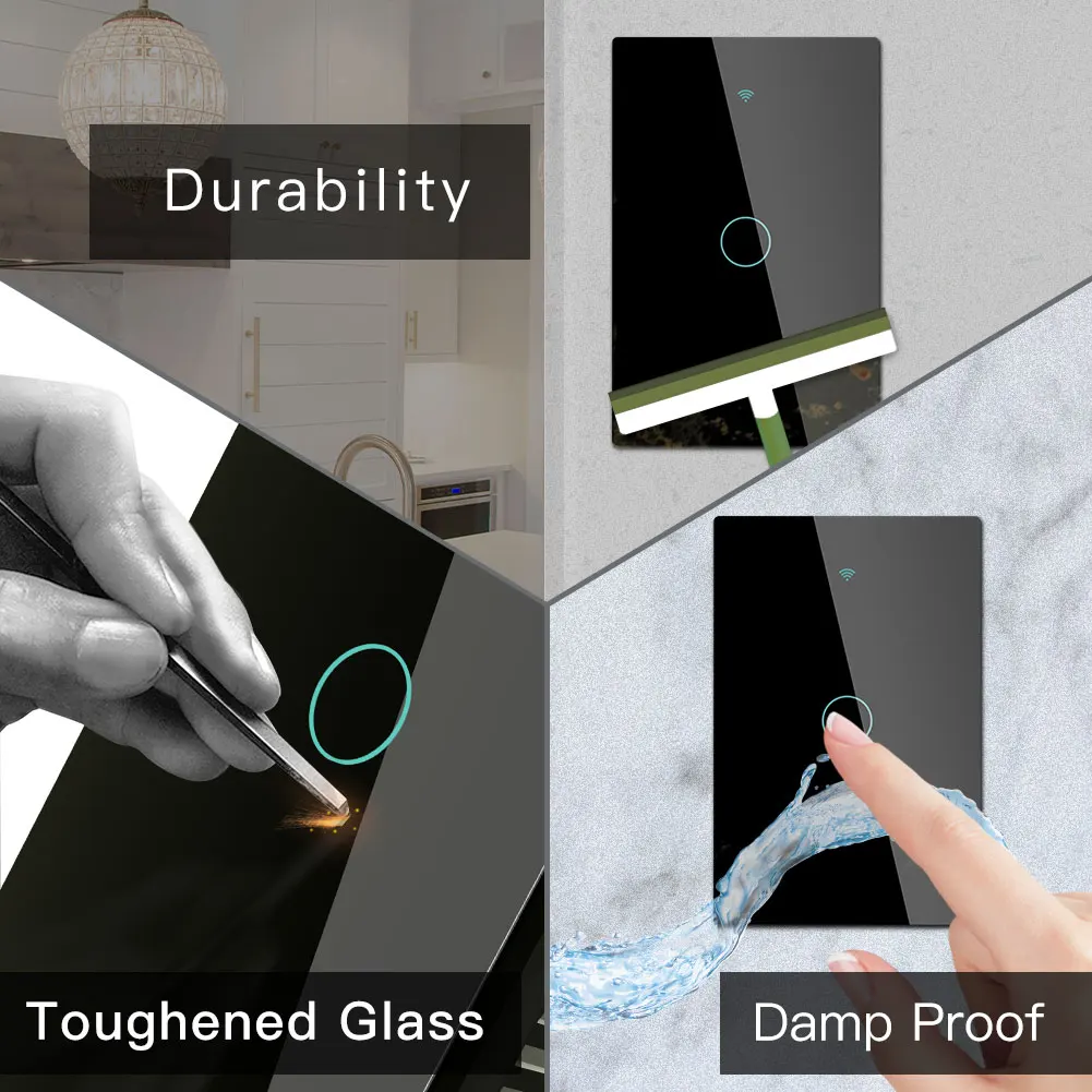 1.No neutral wire required;easily installed without rewiring your existing wire with single live wire design;Unique tempered glass panel fits for different kinds of decoration styles and scratch resistance glass panel gives the best look to blend with any wall design.(Attention:A capacitance is a must for normal work that is included in the package.)