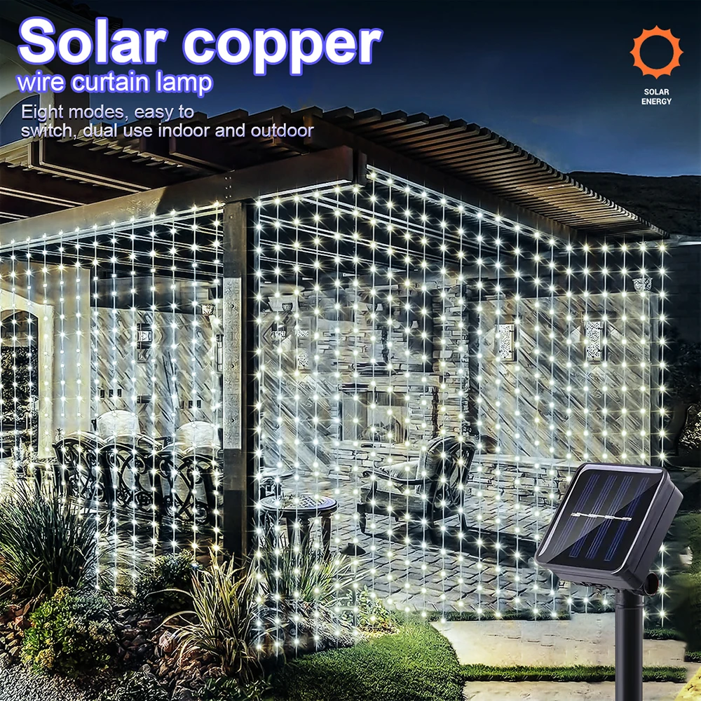 Outdoor Solar Curtain Light 300LED Waterproof String Lights Garden Yard Pavilion Fairy Garland String Lights Holiday Decor Light