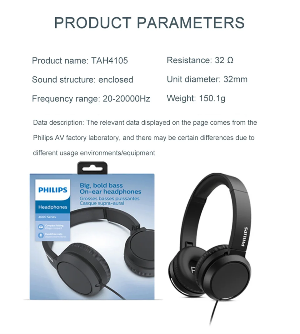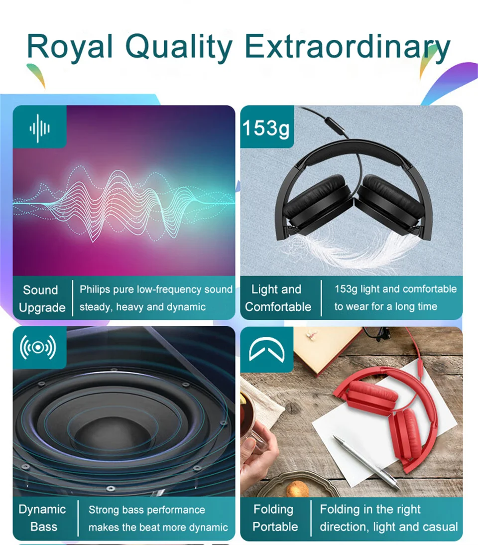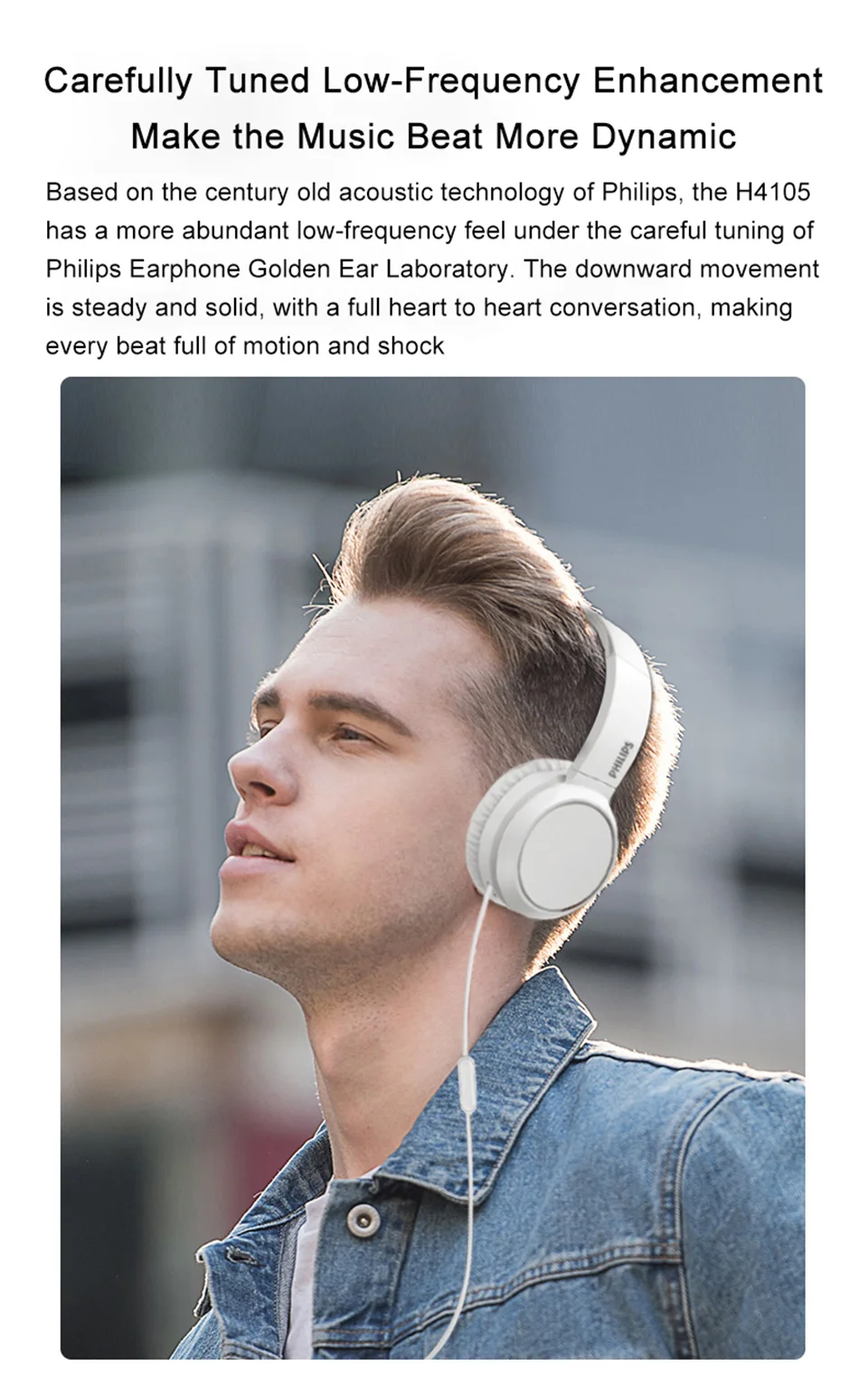 Philips TAH4105 Wired 3.5mm Gaming Earphone HiFi Stereo Folding Convenient Headphones Online Lesson Education Learning Headset
