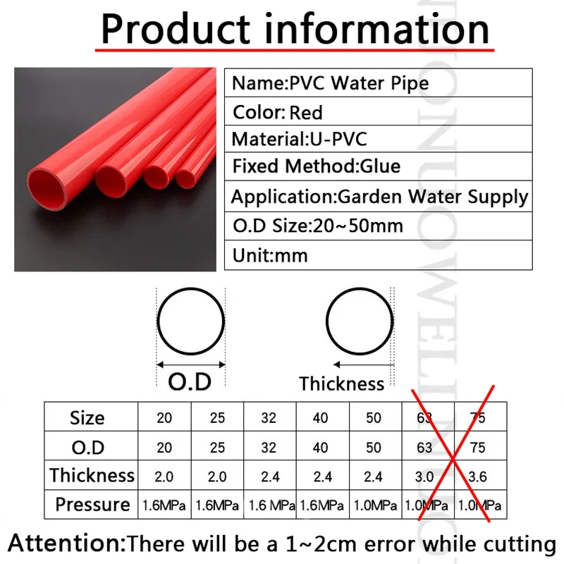 O.D Size :16/20/25/32/40/50/63/75/90mm.