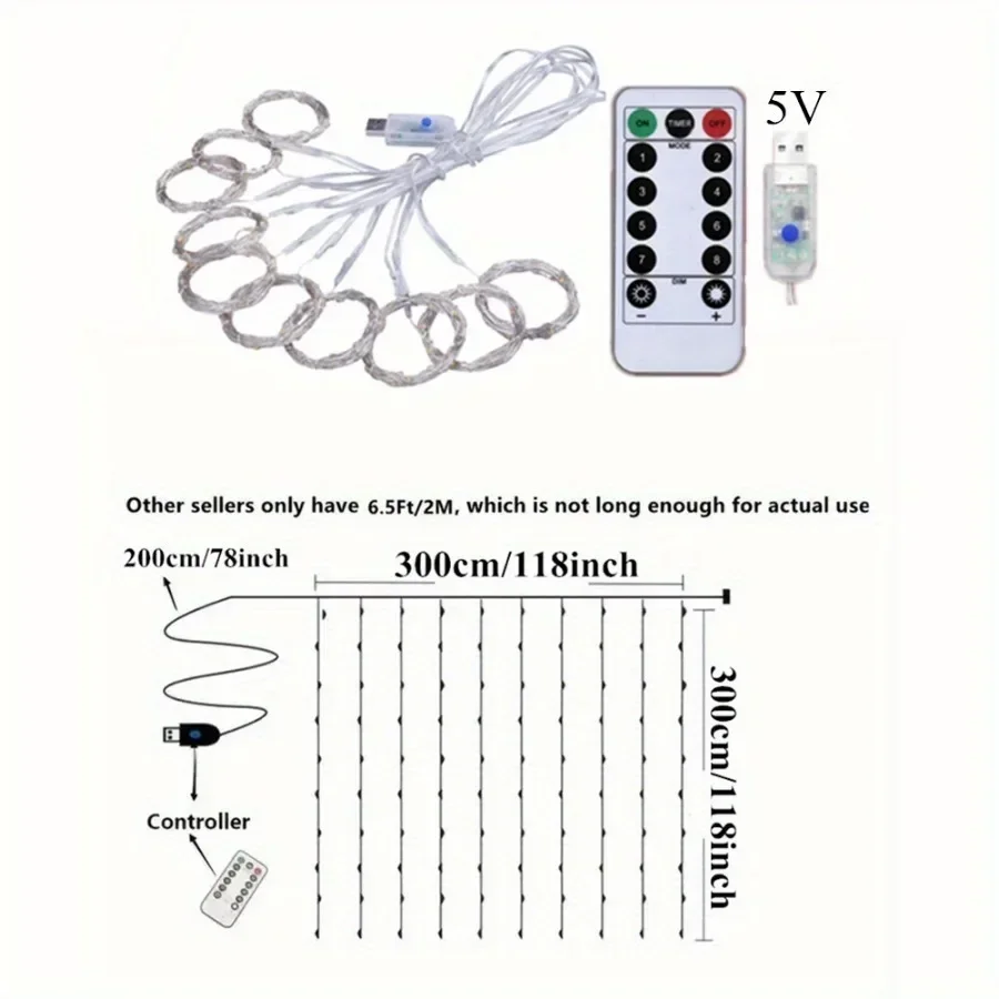Remote Control USB Fairy Lights 3 4 6 Meters LED Curtain String Lights for Christmas Home Bedroom Decoration Festive Party