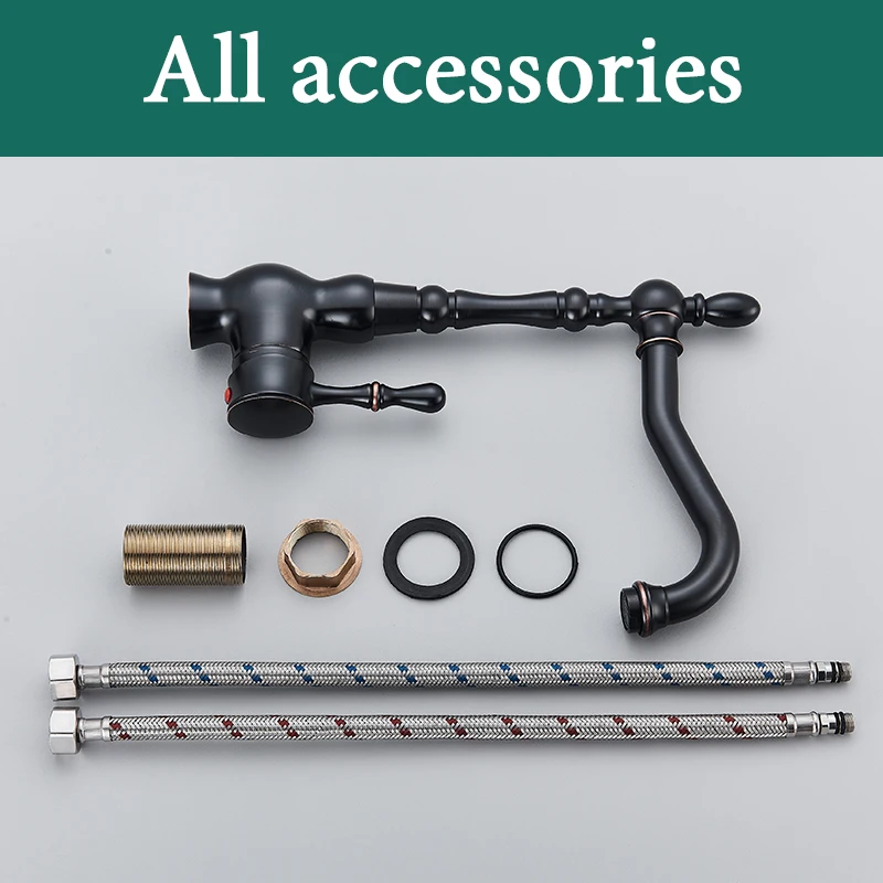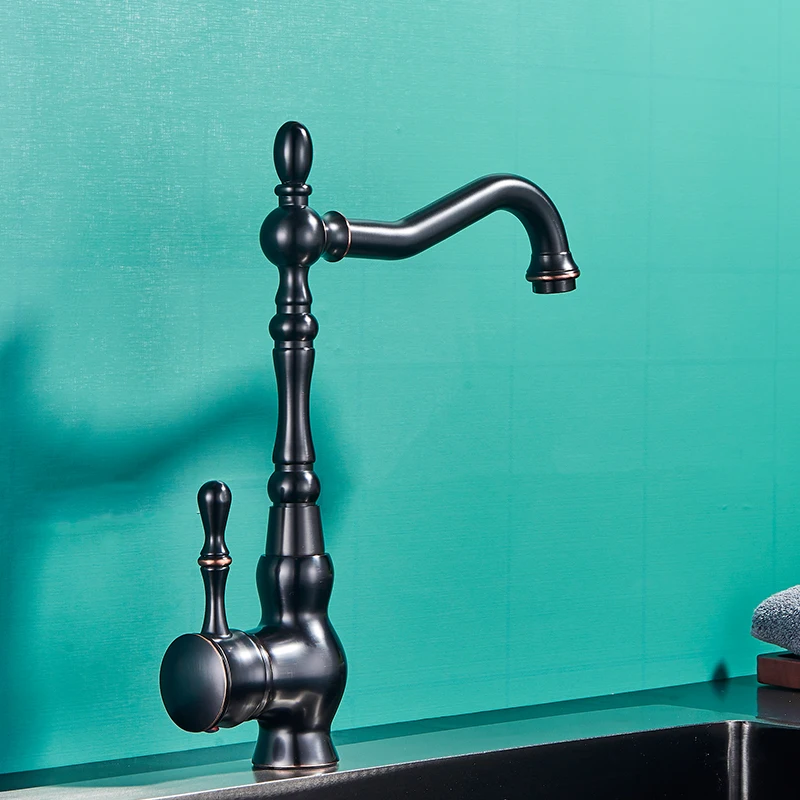 Rozin Black Bronze Kitchen Faucet Classical Deck Mounted Kitchen Faucets 360 Degree Rotation Hot Cold Water Mixer Taps