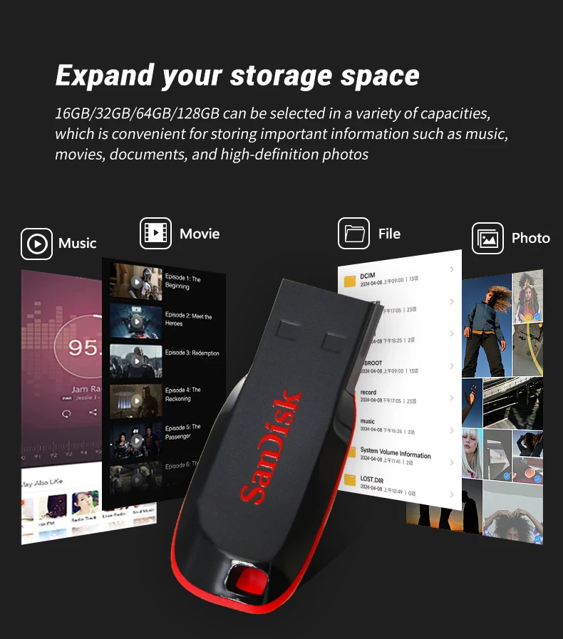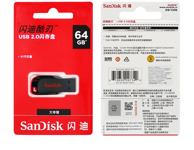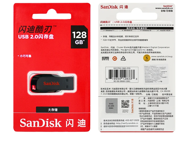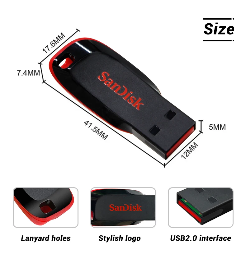 SanDisk Cruzer Blade USB Flash Drive 16GB 32GB Memory Stick 64GB 128GB Portable USB Storage Disk For Computer