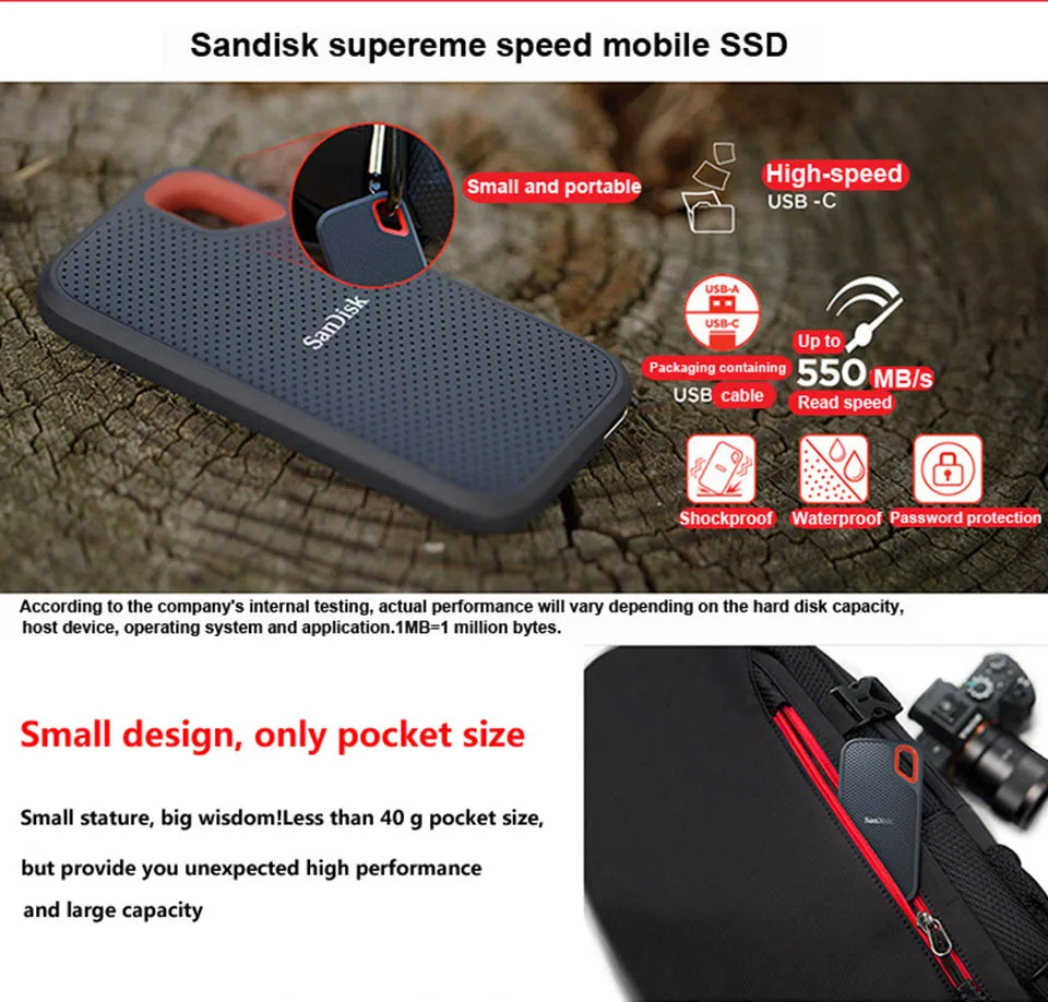 SanDisk Extreme Portable SSD 1TB 500GB 550MB/S External Hard Drive SSD USB 3.1 HD SSD Hard Drive 2TB Solid State Disk for Laptop|External Solid State Drives| - Frontier General Hardware