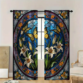 Sale Quick view Stained Glass Window Curtains Butterfly Lily Design Decorative Privacy Blackout Panels for Living Room or Bedroom Windows (Set o 1. **Material**: Polyester 2. All dimensions are manually measured and may have deviations of 1-3 c MSRP: Was: $51.58 Now: $43.84 - $147.36 Options