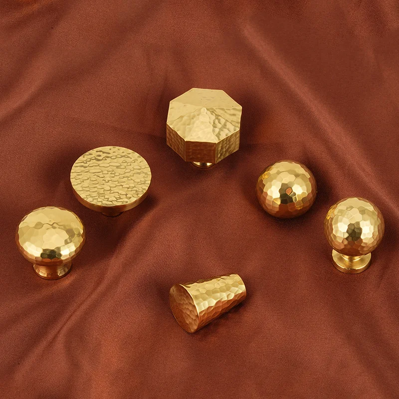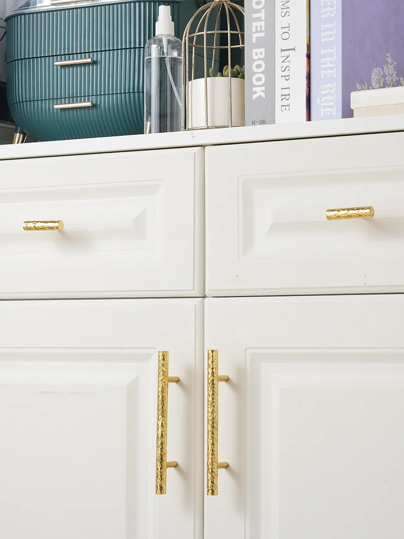 Solid Brass Long Wardrobe Cabinet Door Handle Kitchen Hand-hammered Drawer Knobs European Golden Cabinet Furniture Handles