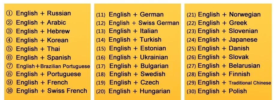 Multilingual version keyboard: English letters and inscribed language letters together.