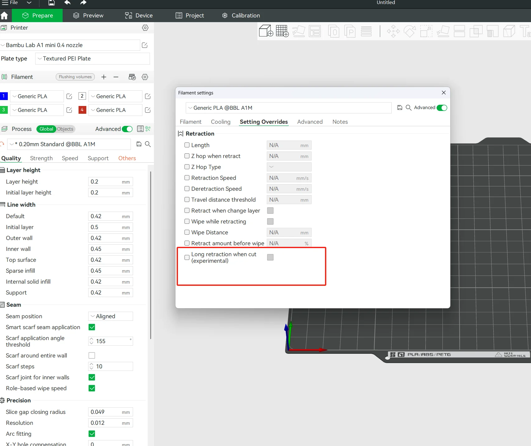 Important: Before each printing, please make sure that the optionof long retraction when cut in filament setting is turned off,otherwise the filament hub or BMCU may be damaged.