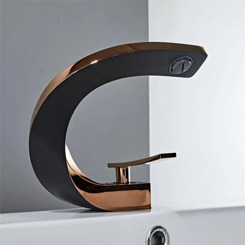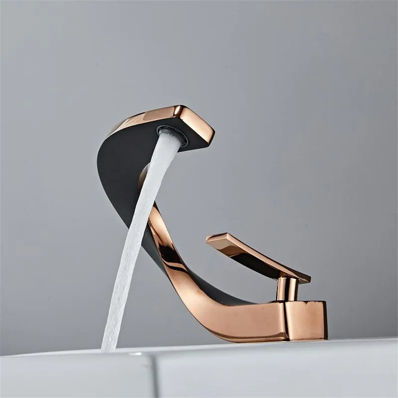Tuqiu Bathroom Faucet Brass Rose Gold White Bathroom Basin Faucet Cold Hot Water Mixer Sink Tap Deck Mounted Black Rose Gold Tap
