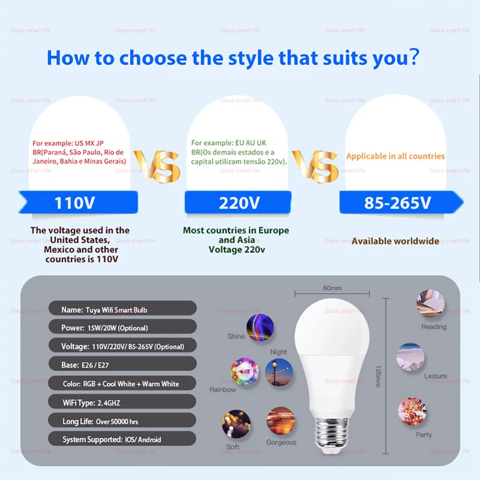 (4)Multi-bulb sync: Control multiple bulbs simultaneously with the Smart Life app, Alexa, or Google Assistant.