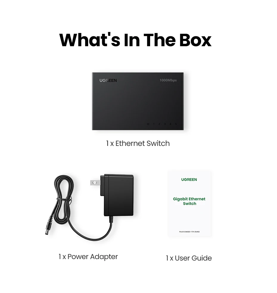 UGREEN Ethernet Switch 1000Mbps Mini Network Expansion 5 Ports All Gigabit for Router PC Lan Hub Full/Half Duplex Plug and Play