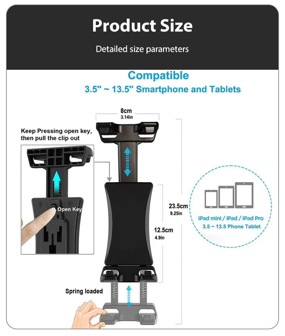 1. Fit Tablet stand with diameter of 21.5-40mm.
