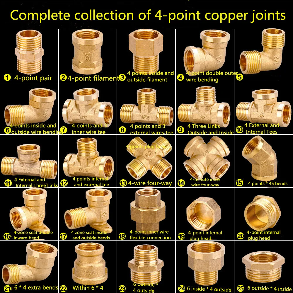Water pipe plumbing fittings 6 points to 4 points copper reducing inner wire hose outlet double inner wire pair connector