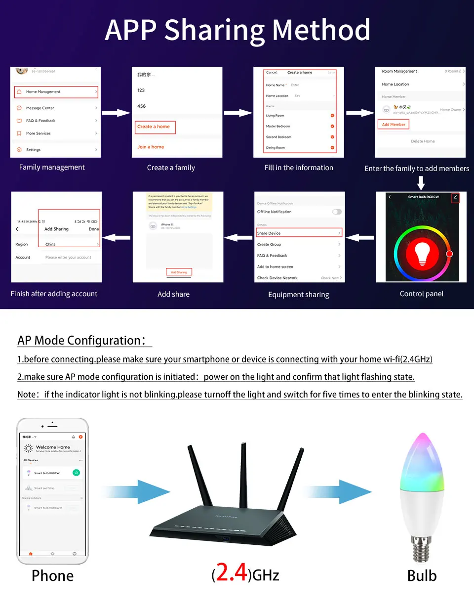 How to connect this bulb with the RF 2.4G remote?