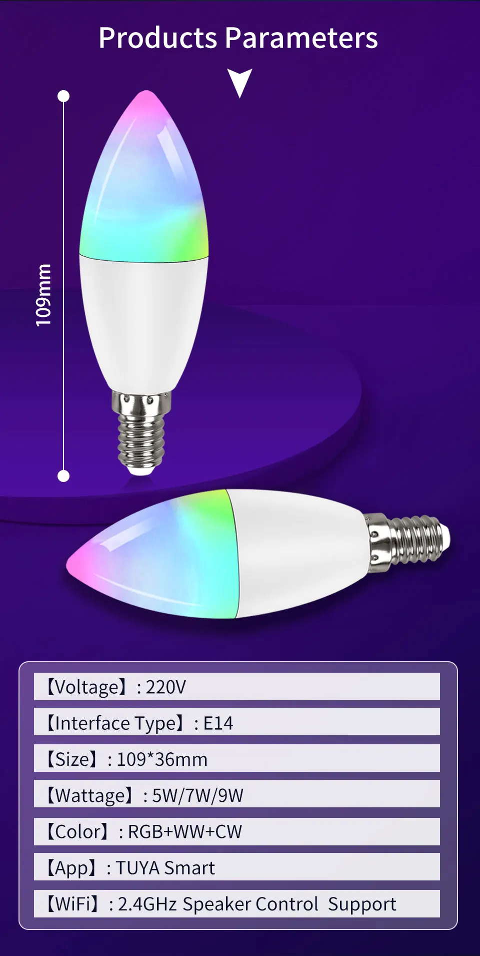 Wifi E14 Led Bulbs 220V Candle Light Tuya Smart Life Spotlight RGB Lamp with RF 2.4G Remote Group Voice Control Alexa Google