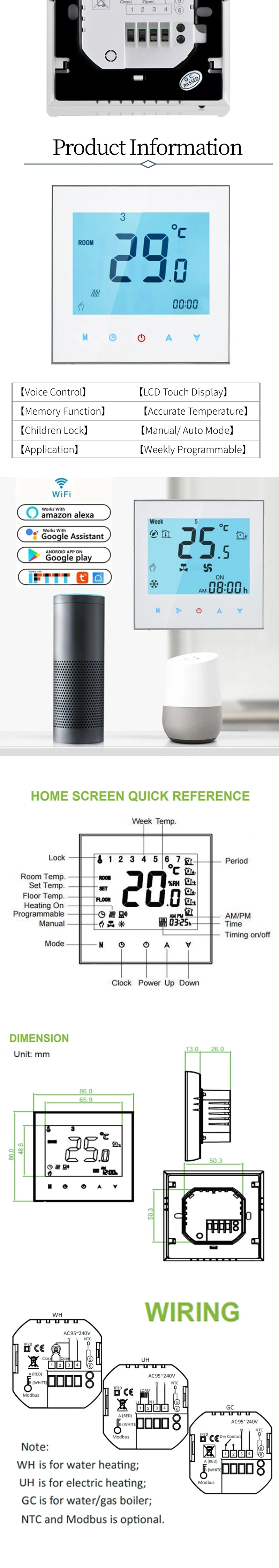 WiFi Smart Thermostat Electric floor Heating Water/Gas Boiler Temperature Remote Controller for Google Home Alexa THP1000