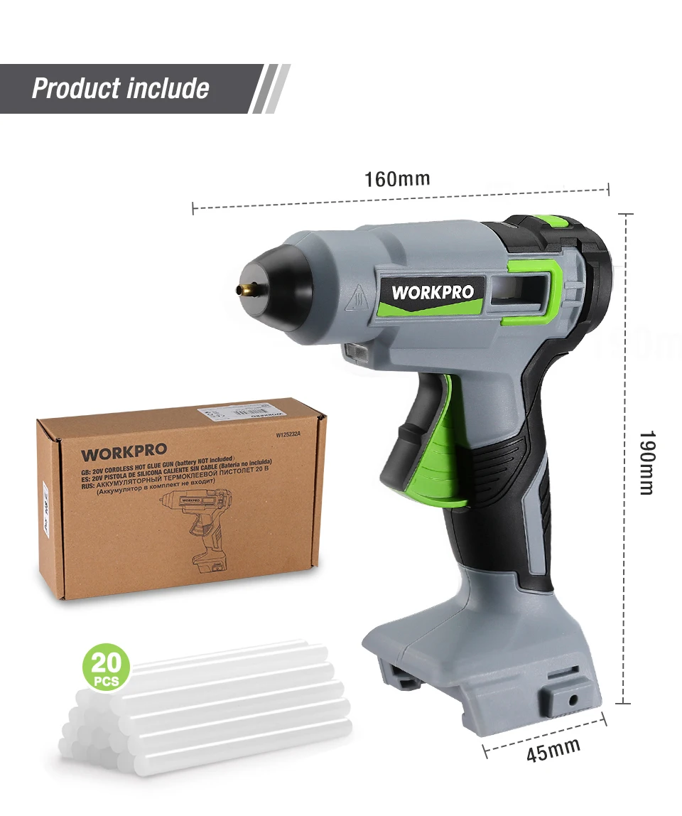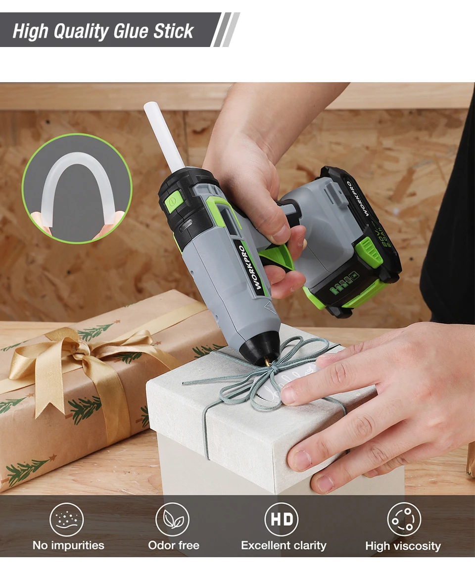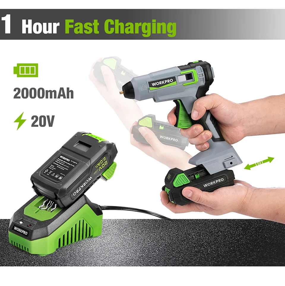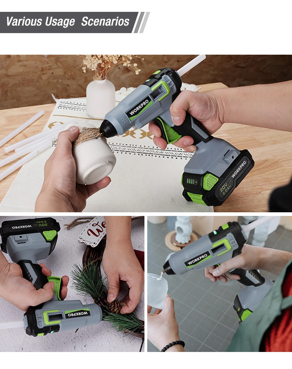 WORKPRO 20V Cordless Hot Glue Gun tool with 12/ 20pcs 11mm Glue Sticks Home DIY Electric Heat Repair Tool Replaceable Battery