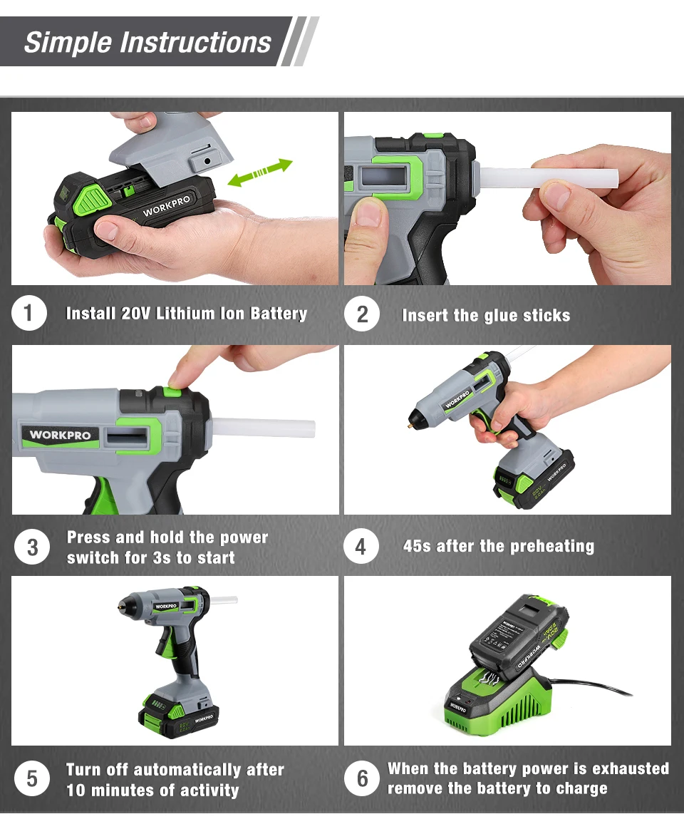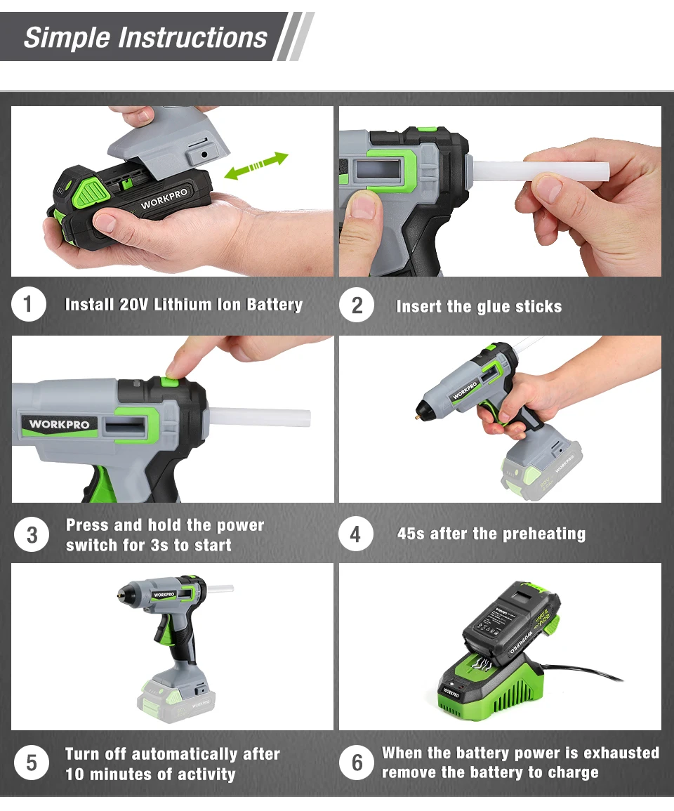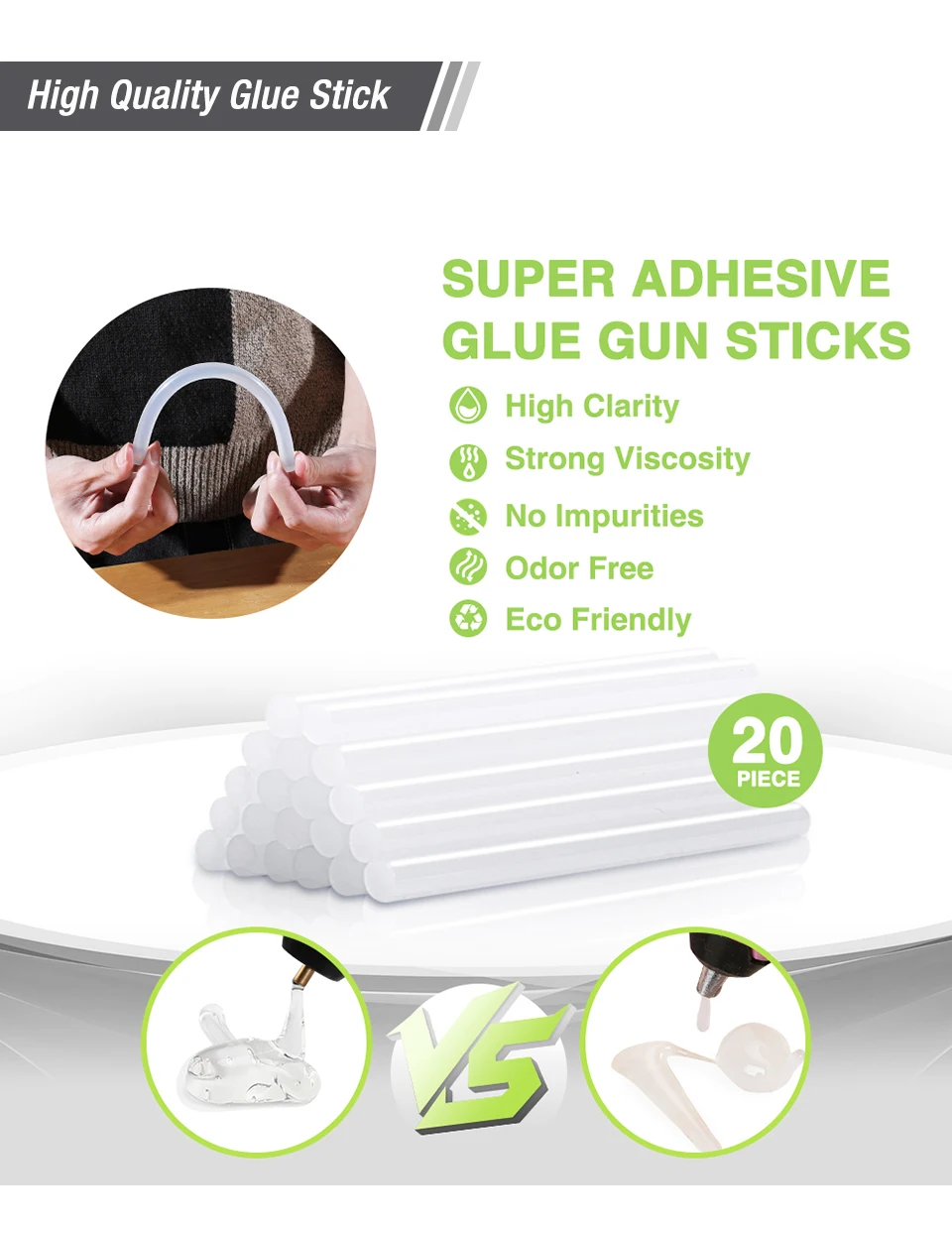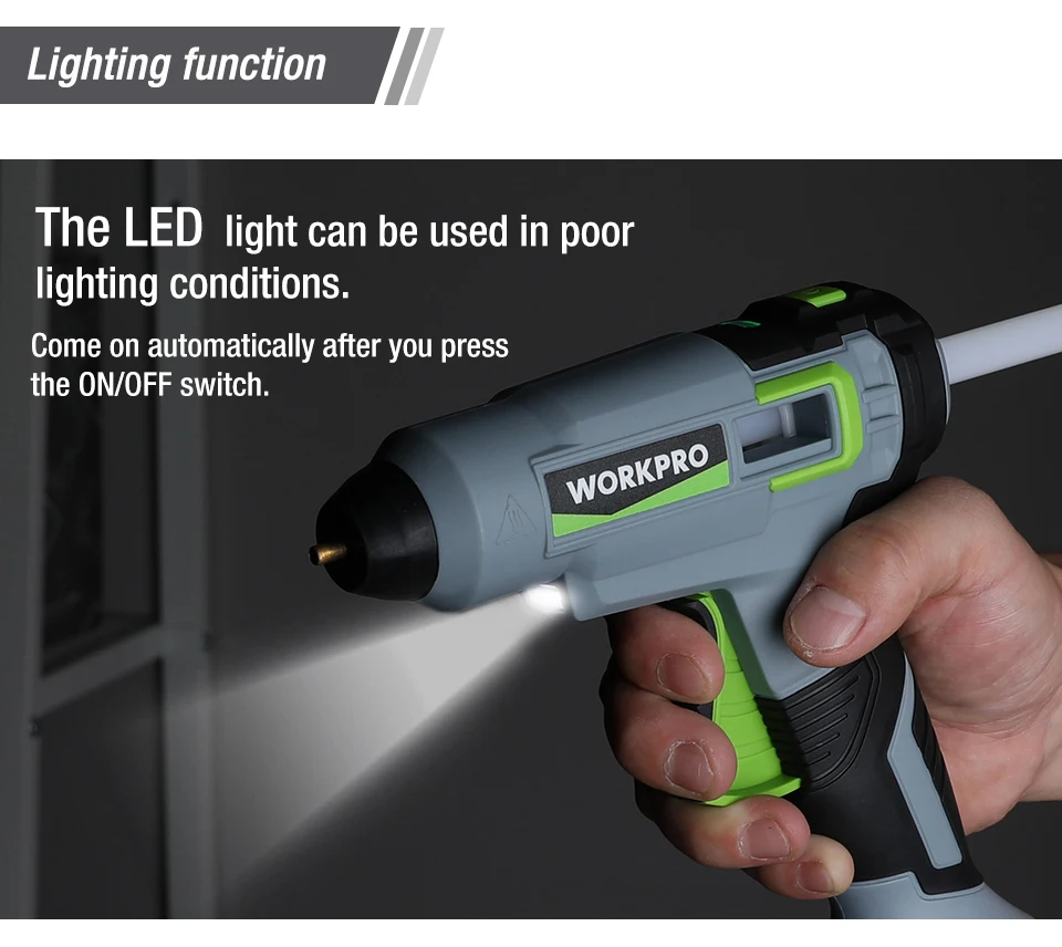 WORKPRO 20V Cordless Hot Glue Gun tool with 12/ 20pcs 11mm Glue Sticks Home DIY Electric Heat Repair Tool Replaceable Battery