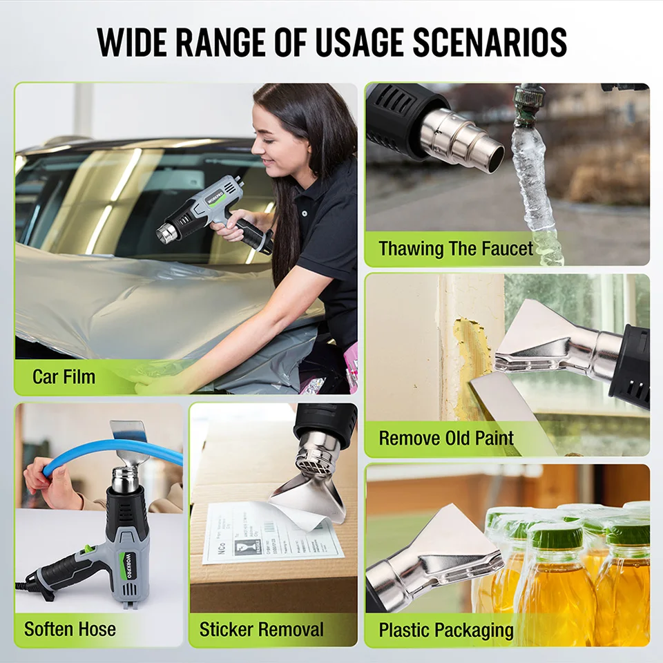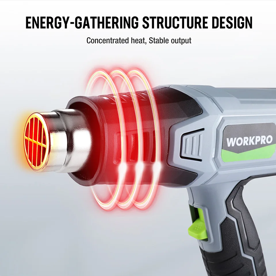 WORKPRO-Adjustable Hot Air Gun, Mini Heat Gun, Thermal Blower, Shrink Wrapping, Four Nozzles Construction, 2000W