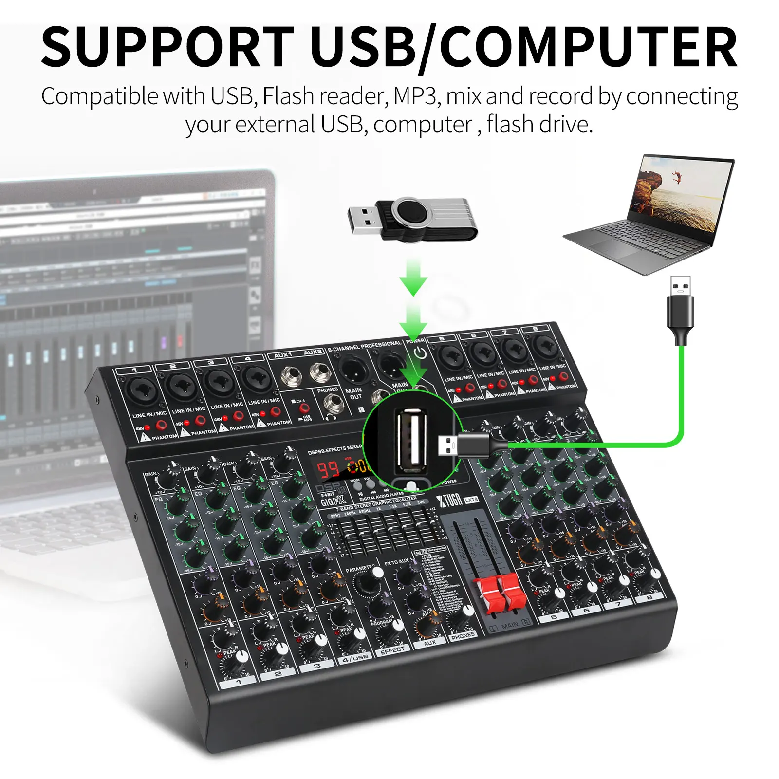 XTUGA Professional 8 Channel Mixer Digital Audio Mixing Console