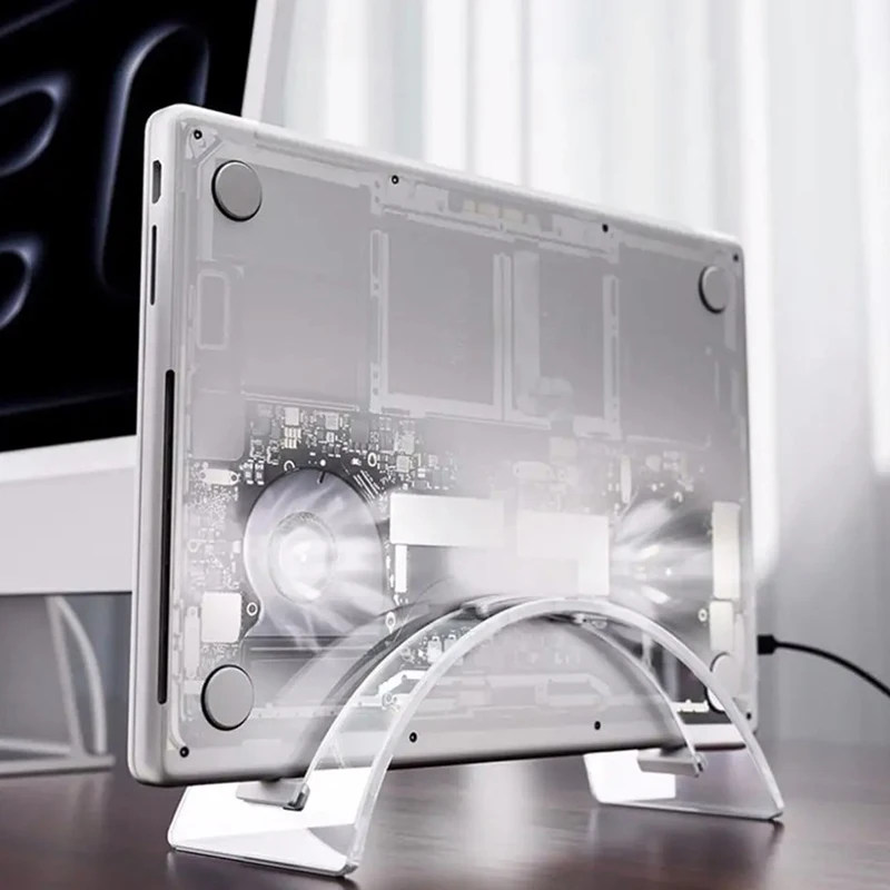 elevate your workspace with this stylish and functional acrylic laptop stand.