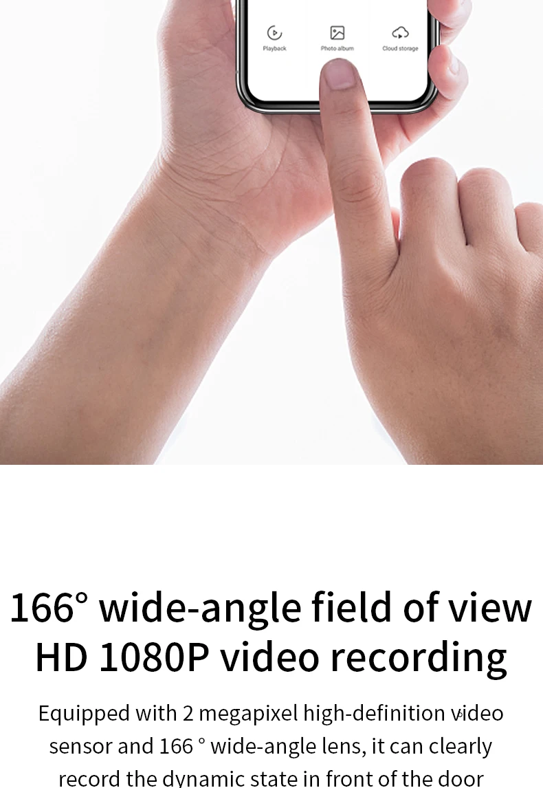 - 1080P HD video recording with 166 wide-angle lens, equipped with 2 megapixel high-definition video sensor, it can clearly record the dynamic state in front of the door.